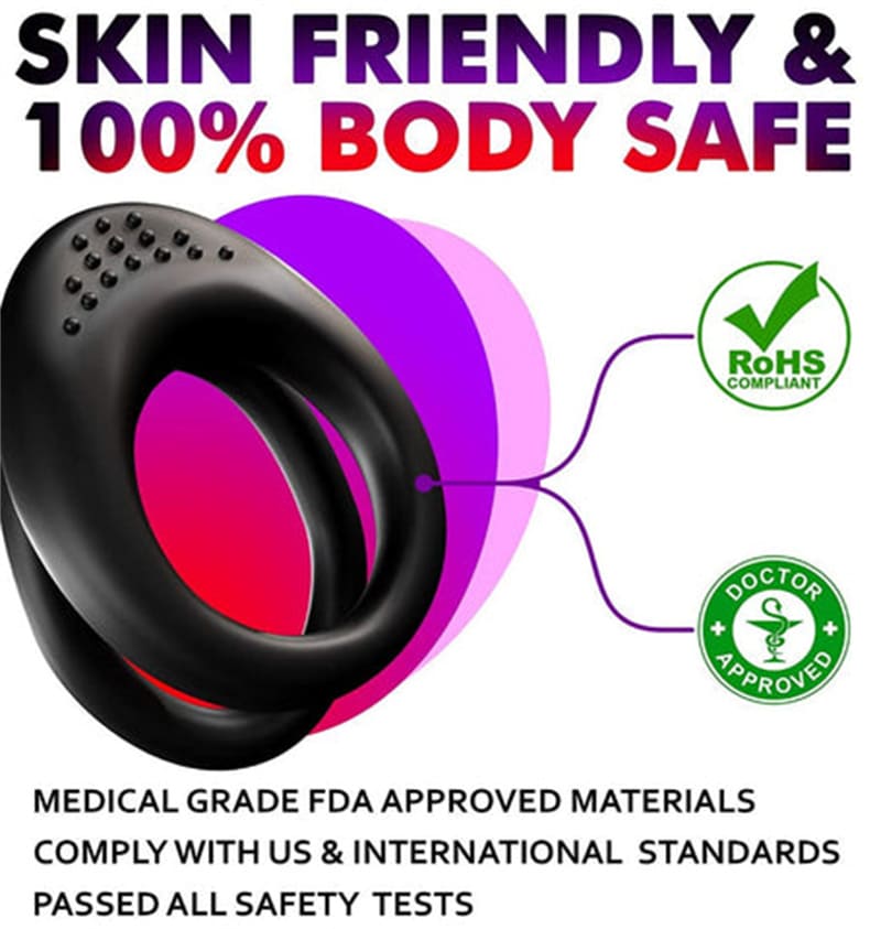 🌿 Hautfreundliches Premium-Silikon – Gefertigt aus hochwertigem, körperfreundlichem Silikon, fühlen sich die Dual Penisringe weich, geschmeidig und angenehm auf der Haut an – hypoallergen, elastisch und langlebig.